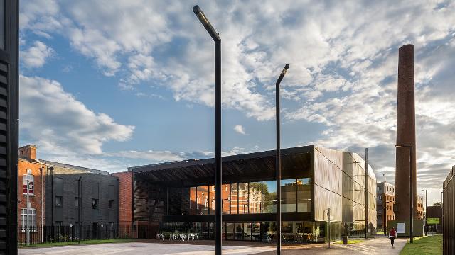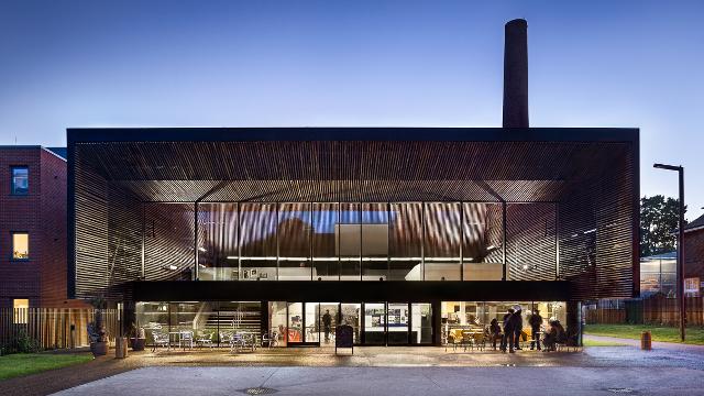 The Bernie Grant Arts Centre is a 4,000 m² complex in a series of pavilions. These complement existing Grade II heritage listed buildings. The Centre consists of a 300-person theatre, classrooms, dance and sound studios, performance space foyer, cafe and bar, enterprise units for local businesses and a new public plaza.